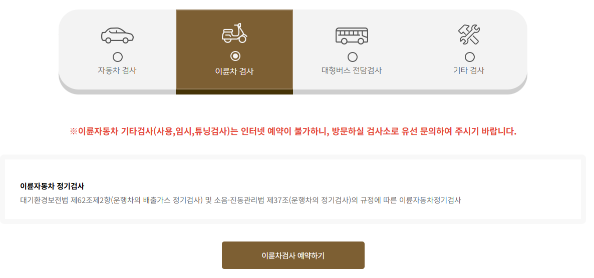정부에서 운영하는 교통안전공단 홈페이지 모바일 앱을 통해 사전 예약이 가능합니다. 로그인 후 ‘이륜자동차 검사 예약’ 메뉴에서 차량 정보를 입력하고, 가까운 검사소를 선택하여 예약하면 됩니다.