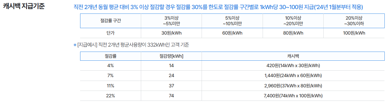 과거 2년 평균 사용량 대비 전기 사용량을 줄이면 할인 혜택 적용