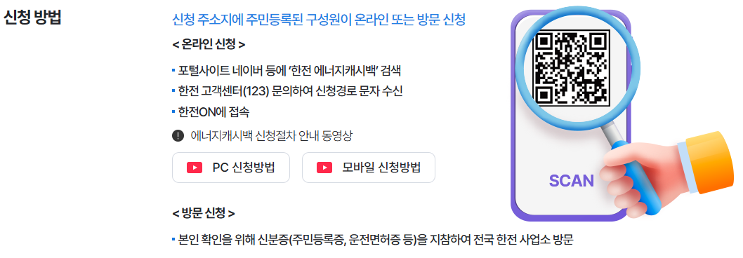 ‘한전:ON’ 앱 다운로드 → 로그인 후 ‘에너지캐시백’ 메뉴에서 신청