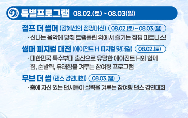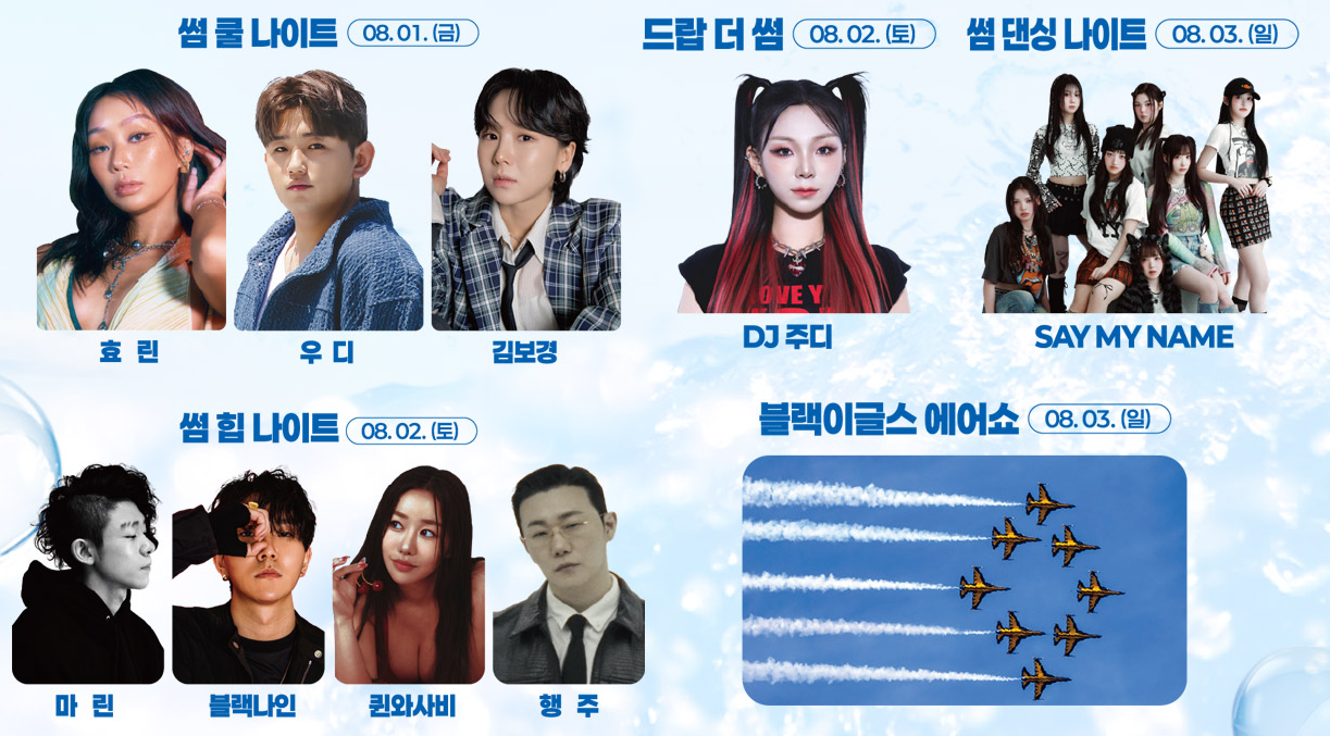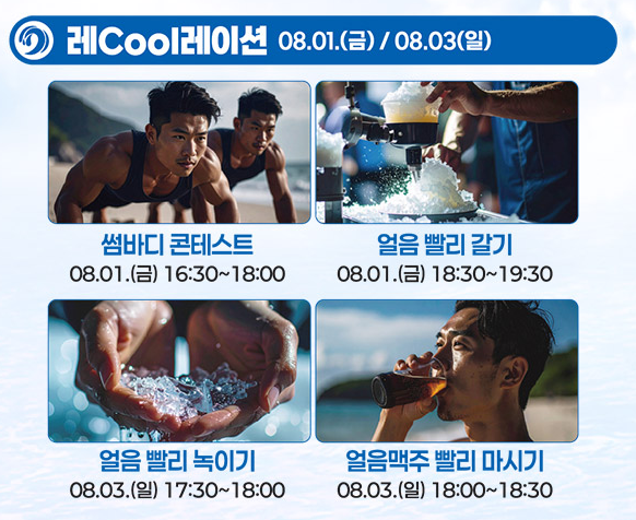 | 🌊 해변+음악+체험의 조합 | 낮엔 물총축제, 밤엔 콘서트! 하루 종일 즐길 수 있어요. |
